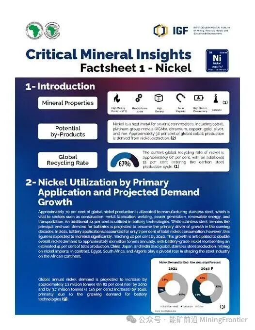 非洲丰富的矿产资源能够推动工业增长,但由于开采活动占据主导地位,而增值活动有限,其巨大潜力仍未得到充分开发。这些由非洲矿业论坛 (IGF) 和非洲开发银行联合编写的出版物,深入分析了镍、铜、钴、锂、铝土矿、天然石墨、铁矿石、锰、磷酸盐、钒、铂族元素和稀土元素等矿产资源。