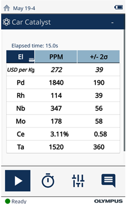 在进行均质化之前,回收行业应使用Vanta XRF分析仪对相同类型的材料进行分拣和分离。可分为三个或四个等级,例如氧传感器、三元催化器、二元催化器和柴油微粒过滤器(DPF)。为改进分类流程,可使用“伪元素”功能在分析仪数据库中定义具体的等级。