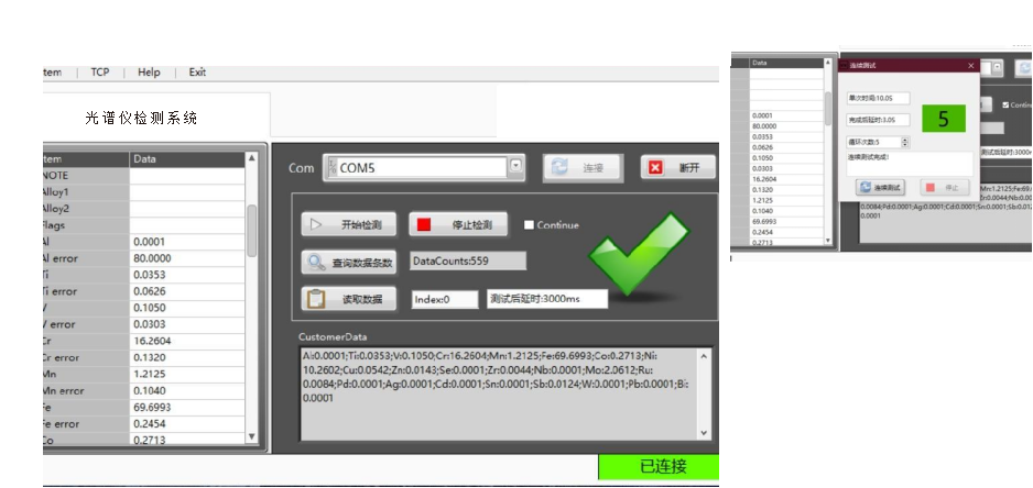 ● 通过蓝牙实时获取手持仪检测结果数据