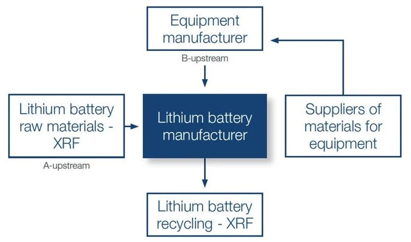 正如下面的流程图所示,手持XRF分析仪在锂离子电池供应链的各个环节都能发挥巨大作用。