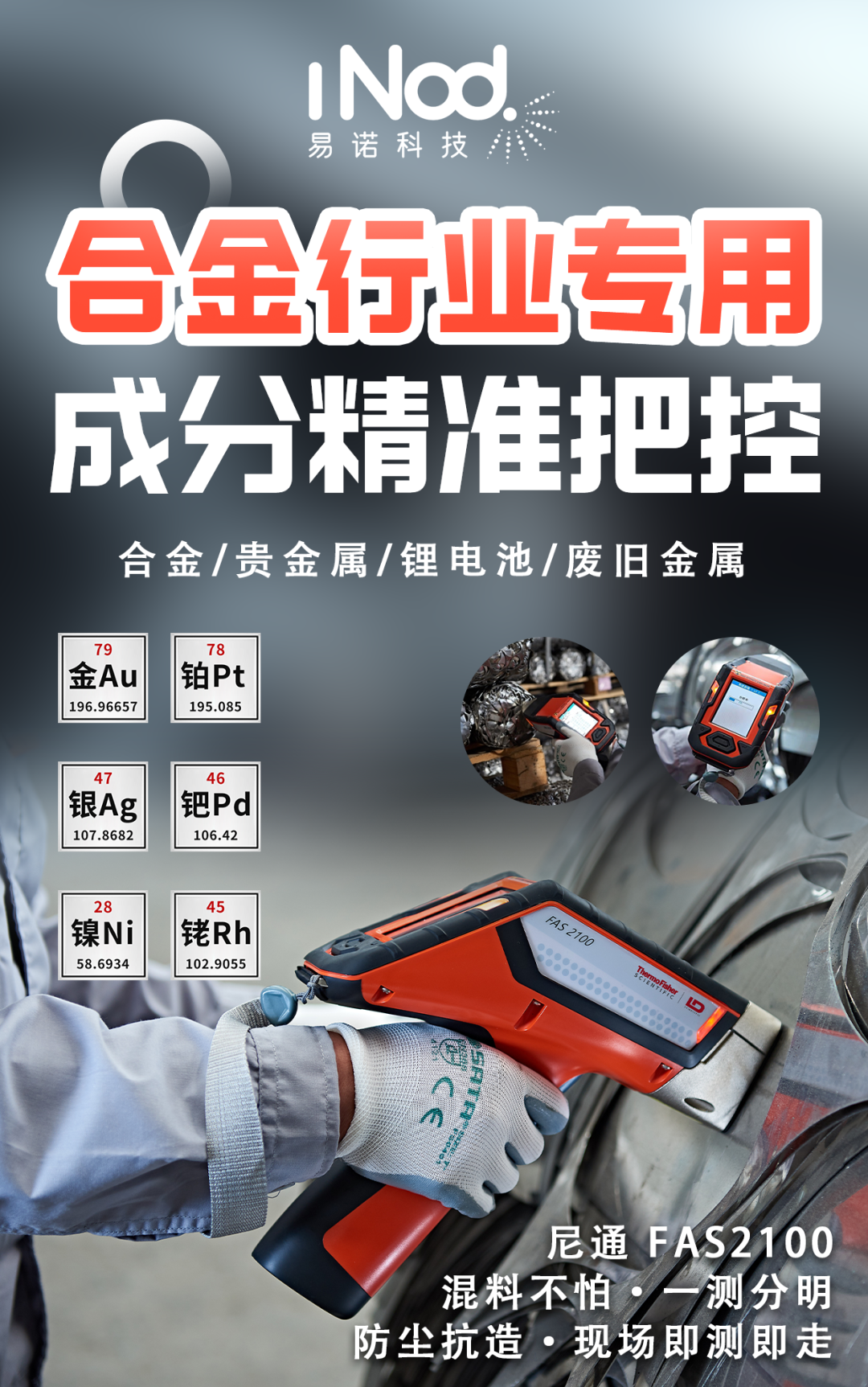 在废旧金属回收、合金加工、贵金属鉴定等行业,快速、精准地识别金属成分是核心需求。而易诺科技的合金手持光谱仪,正是解决这一痛点的“黑科技”工具,凭借便携、高效、精准的优势,正在成为行业标配。